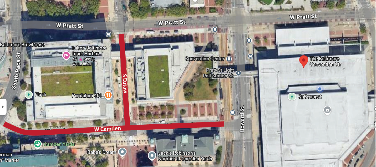 - Eutaw St. from W. Pratt St. to W. Camden St.